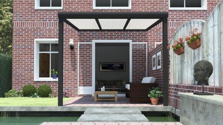 Terasa clasică acoperită cu antracit mat de 4,00 x 2,5 metri cu policarbonat opal